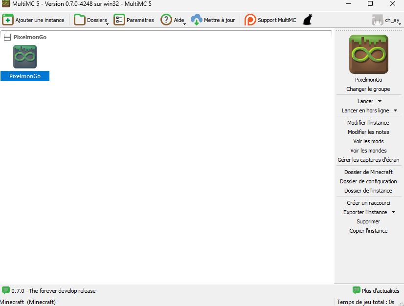 Installez le launcher MultiMC sur votre ordinateur s'il ne l'est pas déjà .
